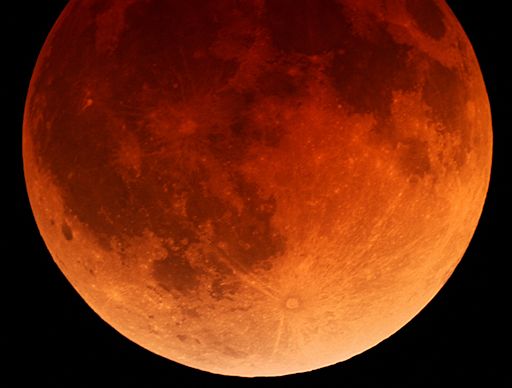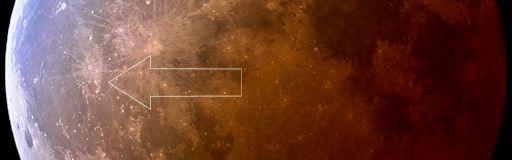 the shadowed Moon is mostly bright red. A quick trip to the Moon