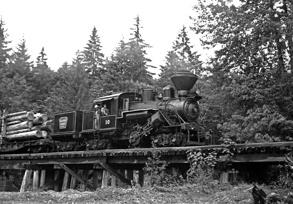 Soon after delivery of the locomotive to the Crossett Western Company of Wauna, OR in 1929, much of the Crossett timber lands were involved in the series of major forest fires known as the Tillamook Burn. The little saddle tank engine worked throughout the 1930’s and early 40’s hauling out the salvaged timber from the burn.